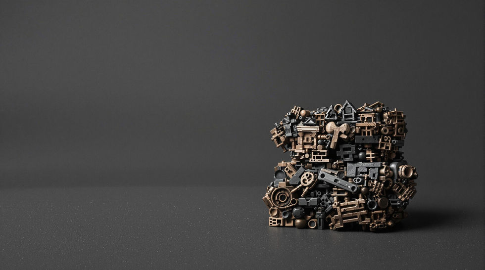 A collection of images featuring textured sculptures, exhibition spaces with informational displays, and street scenes in the background. The sculptures are wavy and abstract, adding depth to the exhibition space.